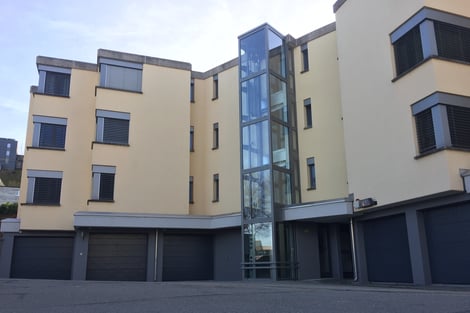 Das kaum unterhaltene Mehrfamilienhaus wurde totalsaniert und alle zehn Wohnungen umfassend und zeitgerecht renoviert. Ebenfalls wurde ein moderner Glaslift angebaut und die Parkierung nicht zuletzt für Velos verbessert.